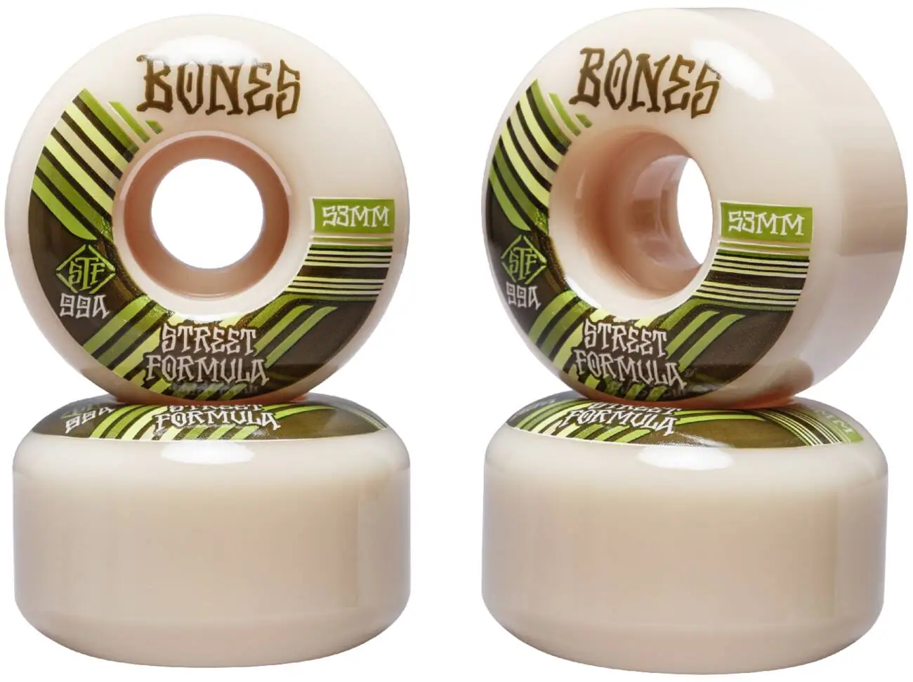 Perfette per skateboard, le STF V4 Wide da della Bones arrivano in una confezione da 4. Realizzate in uretano ad alto rimbalzo, queste ruote ti daranno una piacevole sensazione sotto i piedi. Realizzate in mescola di poliuretano SHR (Super High Rebound) che assorbe le vibrazioni, queste ruote veloci sono perfette per qualsiasi skateboard. Le ruote piccole, con una circonferenza da 52mm, faranno la differenza in pop ed equilibrio. Invece, le ruote medie con una circonferenza da 53 e 54mm, sono versatili e ideali per divertirsi su strada, allo skatepark o su piccole rampe.