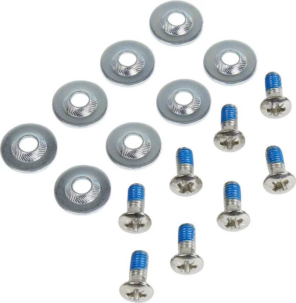 This Binding hardware consists of 8 countersunk washers and 8 14mm M6 screws. They fit most bindings and are tightened with a phillips screw driver.