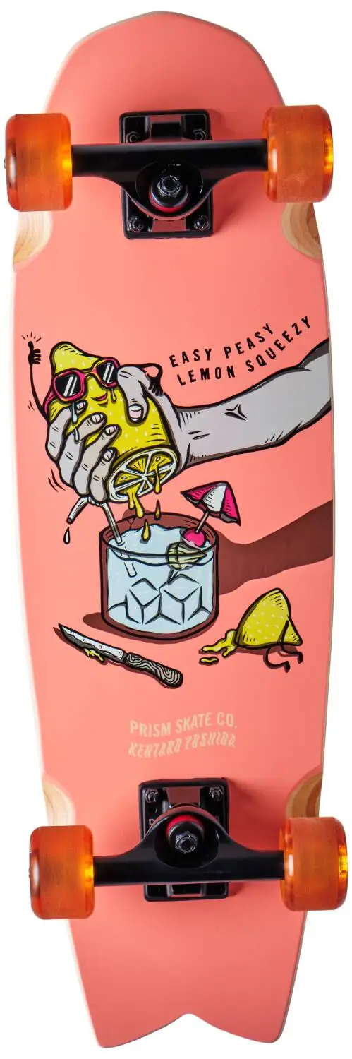 Viene fornito completo di carrelli standard Calibre, ruote Prisma e cuscinetti Arancia rossa. Questa tavola Prism Grit proviene dalla serie Resin che presenta opere d’arte di Kentaro Yoshida.