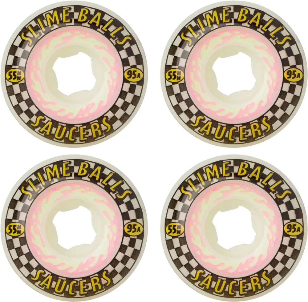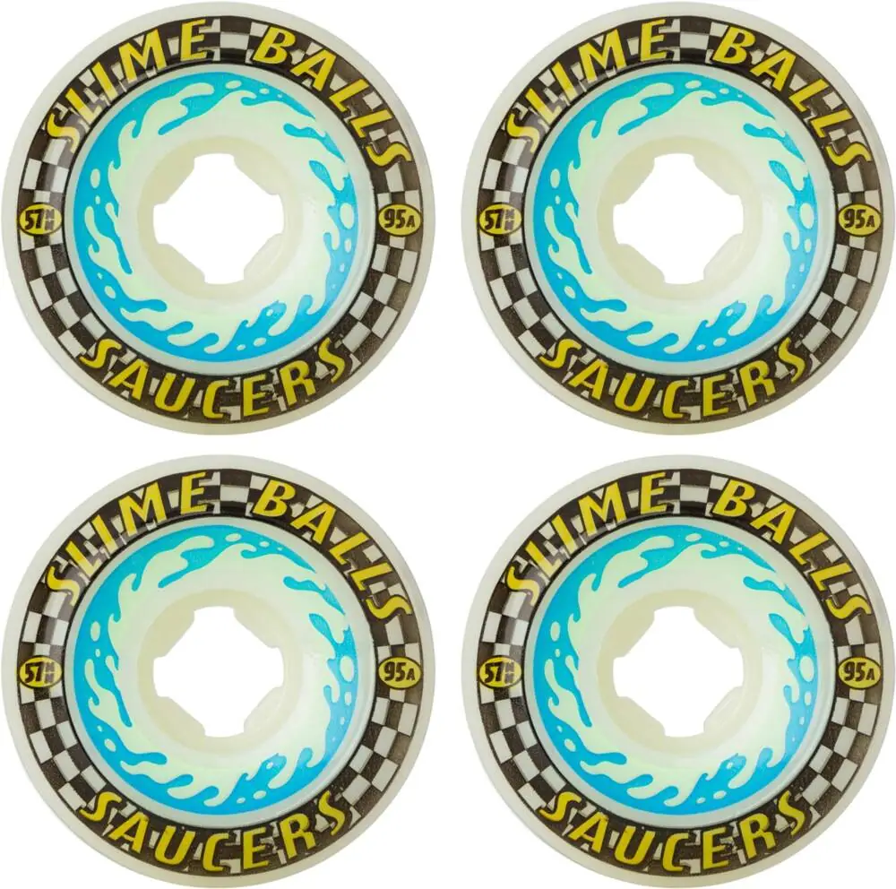 Perfette per cruiser skate, skateboard e surfskate, le Saucers skateboard della Slime Balls arrivano in una confezione da 4. Realizzate in uretano ad alto rimbalzo, queste ruote ti daranno una piacevole sensazione sotto i piedi. Le ruote medie, con una circonferenza da 55mm, sono versatili e ideali per divertirsi su strada, allo skatepark o su piccole rampe. Invece, con le ruote grandi da 57mm potrai raggiungere rampe e ostacoli più alti.