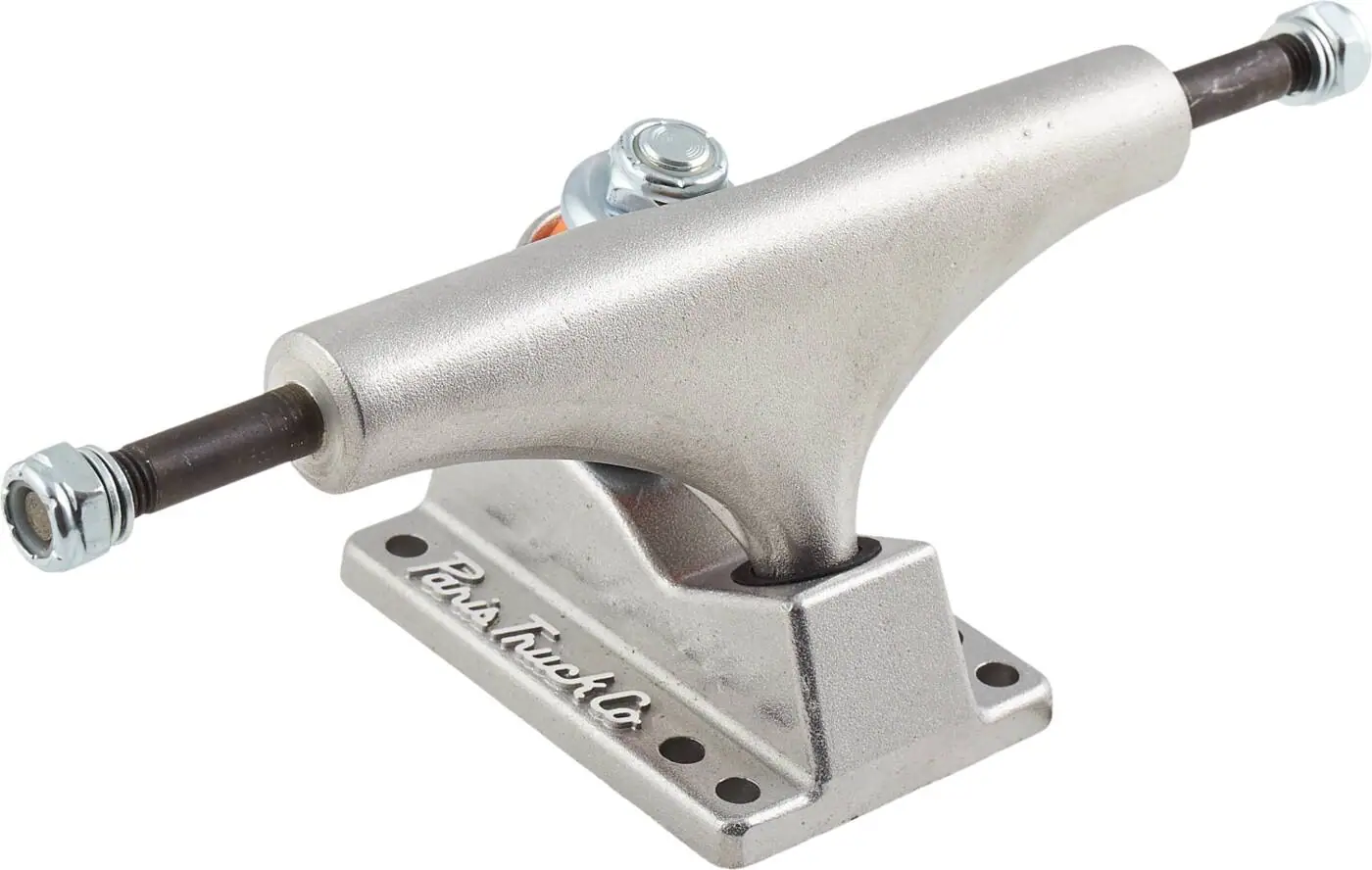 Espressamente pensato per il tuo skateboard cruiser e lo skateboard, questo truck della Paris è la soluzione ideale per chi sta cercando un prodotto valido e di qualità. Scopri di più su Street. Se non fai altro che pensare ai tuoi prossimi trick tra rampe e bowl, non cercare oltre – aggiungi questo truck alto per migliorare l’agilità e le prestazioni della tua tavola. Questo tipo di truck si adatta facilmente a qualsiasi tipo di ruota presente sul mercato. Tuttavia, ti consigliamo di optare per ruote dal diametro compreso tra i 57 e i 60mm. Il mix perfetto tra alluminio e acciaio di alta qualità crea un truck dalla struttura solida, robusta e ideale anche per le sessioni più intense. In più, grazie all’hanger da 149mm (5.8″), questo truck della Paris è estremamente maneggevole e ideale per lo stile slalom. Non dimenticare di controllare la larghezza dell’asse del truck: deve essere compatibile con la larghezza del tuo deck.