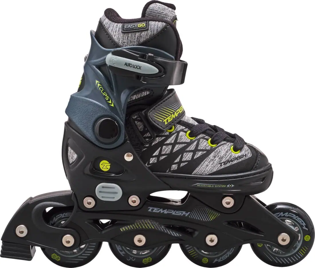 Questi pattini in linea Clips Regolabile della Tempish sono progettati per della i bambini e hanno un ottimo rapporto qualità-prezzo. La taglia è regolabile per durare diverse stagioni, l’ideale per i bambini in crescita. Questi pattini in linea della Tempish, hanno uno scarponcino morbido. Lo scarponcino morbido ti assicura una calzata confortevole. I pattini pattini in linea della Tempish calzano piccoli. Di conseguenza, ti consigliamo di scegliere una taglia in più rispetto a quella che porti di scarpe.