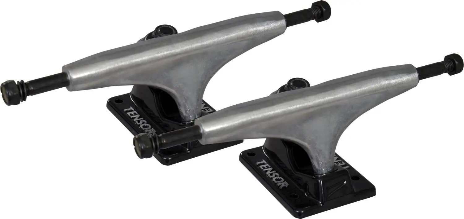 Espressamente pensato per lo skateboard, questo set di truck della Tensor è la soluzione ideale per chi sta cercando un prodotto valido e performante. Scopri di più su Alluminio. Se non fai altro che pensare ai tuoi prossimi trick tra rampe e bowl, non cercare oltre – aggiungi questo truck alto per migliorare l’agilità e le prestazioni della tua tavola. Questo tipo di truck si adatta facilmente a qualsiasi tipo di ruota presente sul mercato. Tuttavia, ti consigliamo di optare per ruote dal diametro compreso tra i 57 e i 60mm. Di’ addio ai compromessi sulle prestazioni del tuo skate e goditi la leggerezza di un truck in alluminio! Non dimenticare di controllare la larghezza dell’asse del truck: deve essere compatibile con la larghezza del tuo deck.