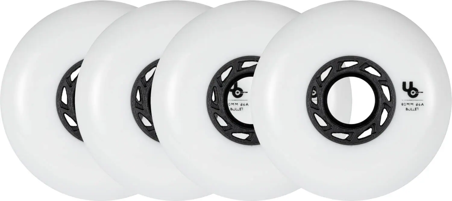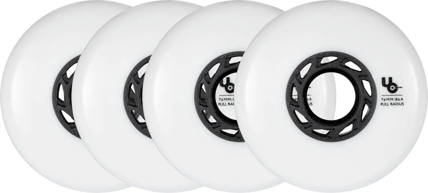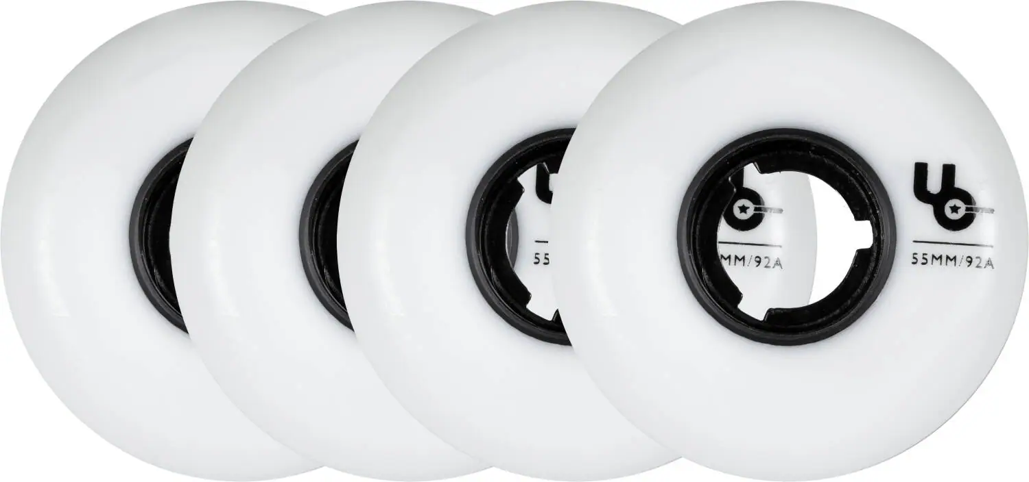 You get the most discrete look with white blank wheels and when it comes to gripping power and raw speed, the white PU wheels work the best