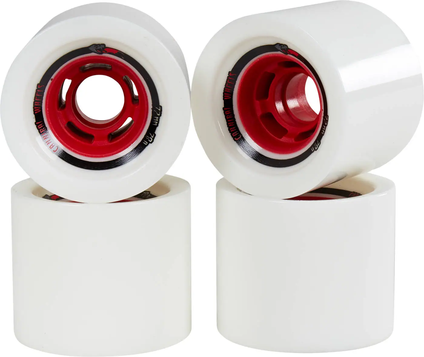 Le ruote per longboard Cannibal escono in confezione da 4 e con 72 mm di diametro ed hanno una superficie di contatto di 60mm e si può scegliere tra diverse durezze di ruota. un numero basso significa un miglior grip, ed un numero alto significa una maggiore velocità.