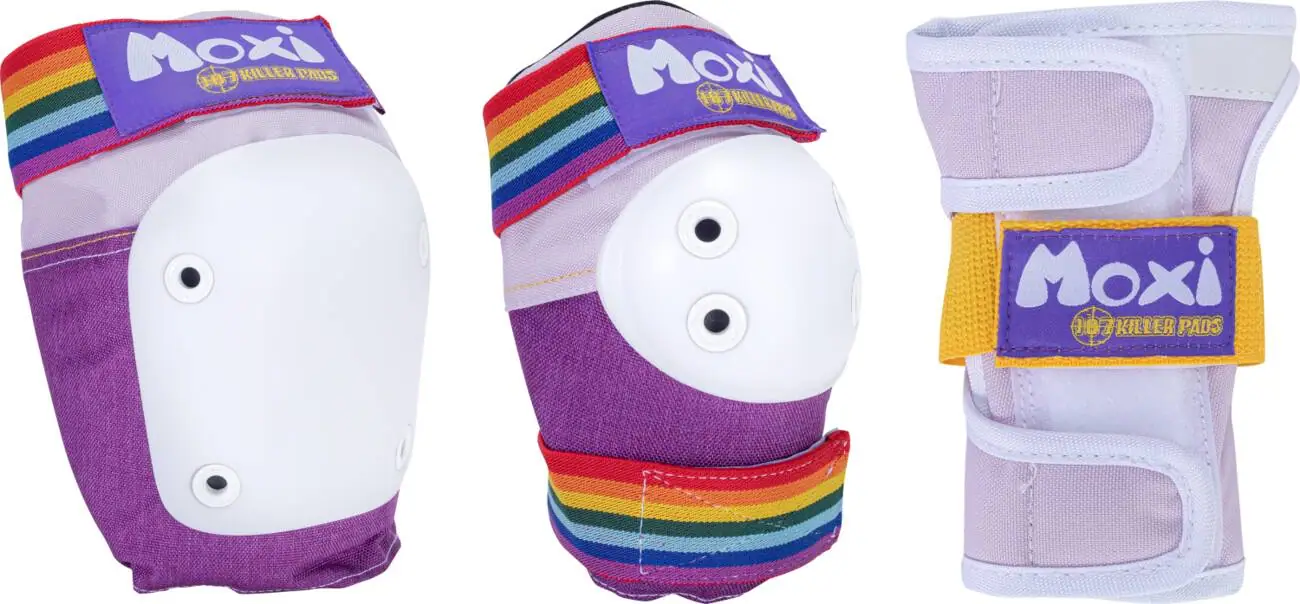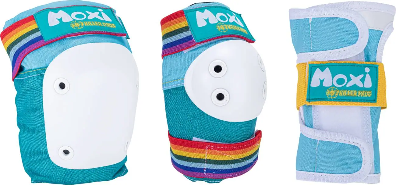 The pads in this set are all made with a shock-absorbing foam for hard impacts and seamless interior finish for improved comfort. For the durability part, you are all covered because the Moxi pads are made of ballistic nylon through industrial stitching.